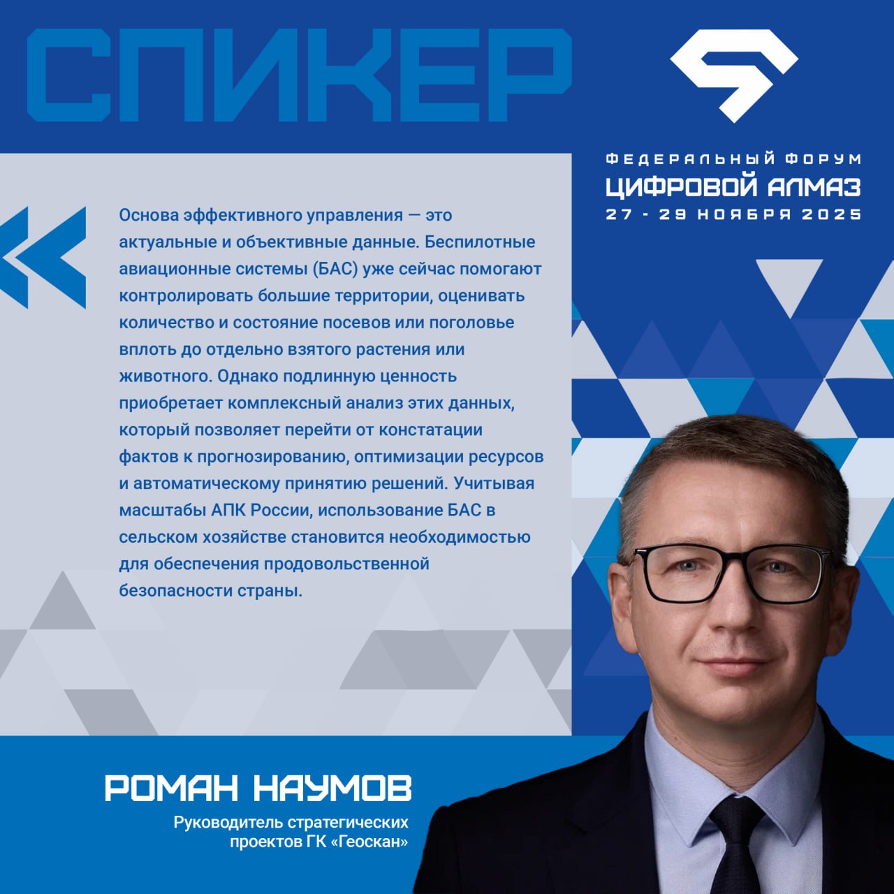 Эксперт IV федерального Форума «Цифровой алмаз» Роман Наумов, руководитель стратегических проектов ГК «Геоскан»